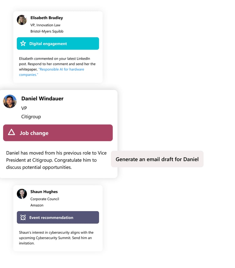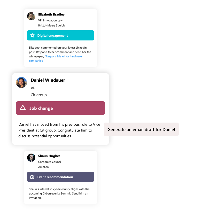 Make relationship-building an effortless part of your workflow with user-specific recommendations designed to grow your business.